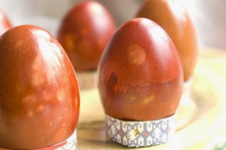 Γενικά αυτό που ισχύει στις φυτικές βαφές είναι ότι δεν πρέπει να τις βάζουμε στην κατσαρόλα μαζί με τα αυγά, γιατί θα δημιουργηθούν κηλίδες και πιτσιλιές στην επιφάνεια τους.