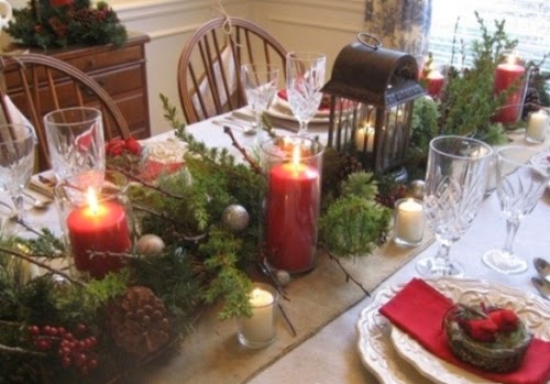 Αυτή η διακόσμηση στο Χριστουγεννιάτικο τραπέζι χρειάζεται μόνο κάποια παραδοσιακά πράγματα, όπως κουκουνάρια, κεριά σε κόκκινα, πράσινα χρώματα, παραδοσιακά στολίδια.